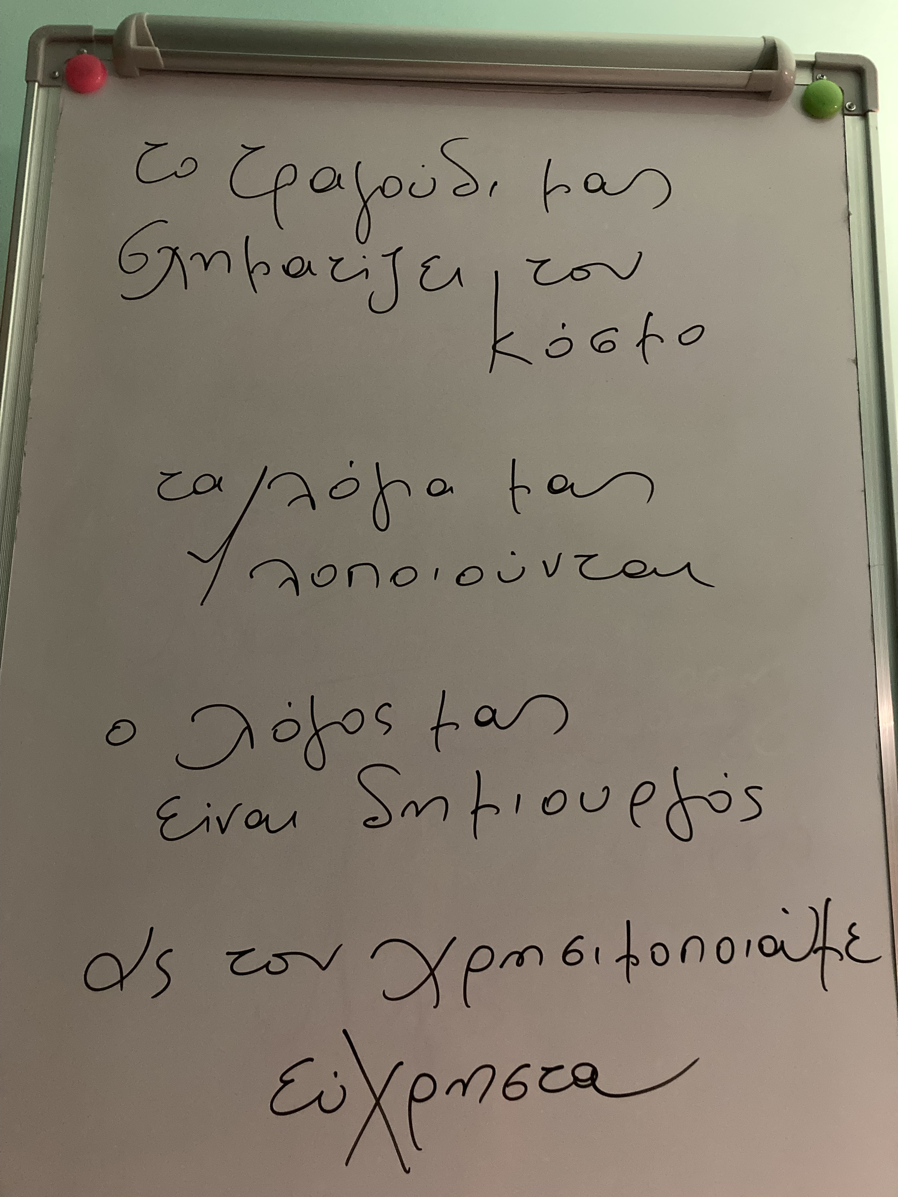Στην ως εδώ μαθητεία μας – πρώτη, δεύτερη και τρίτη εποχή, αντίστοιχα – έχουμε μάθει να (α) σκεφτόμαστε διαφορετικά για τις λέξεις, (β) παρατηρούμε τις λέξεις που χρησιμοποιούμε, (γ) επιλέγουμε τις λέξεις που εκφράζουν με σαφήνεια και διαύγεια την αυθεντική, γνήσια, ελεύθερη βούλησή μας.